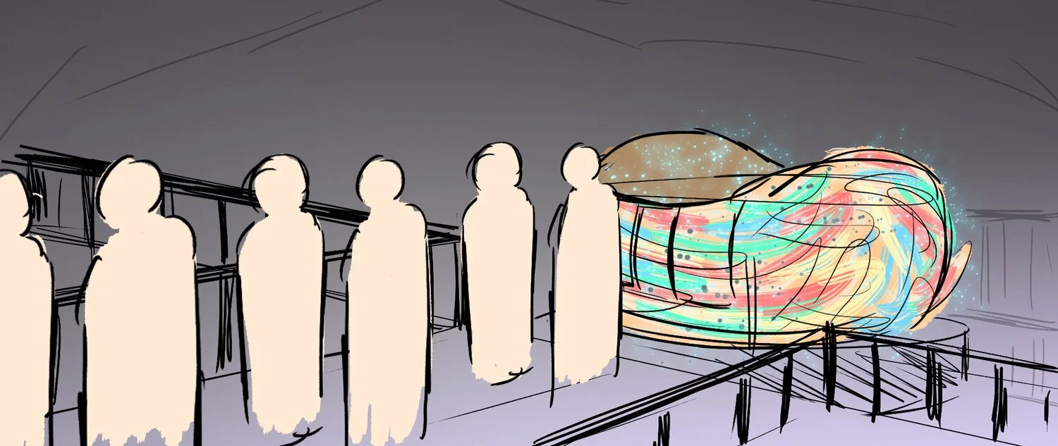 Instead of switchbacks, or even highly themed immersive linear queue experiences, we have designed a queue environment that gives guests agency in choosing how they want to spend their time waiting to go on the ride. The idea here is to create a queue that is just as integral to the story and just as enjoyable a space to spend time in as the ride itself.