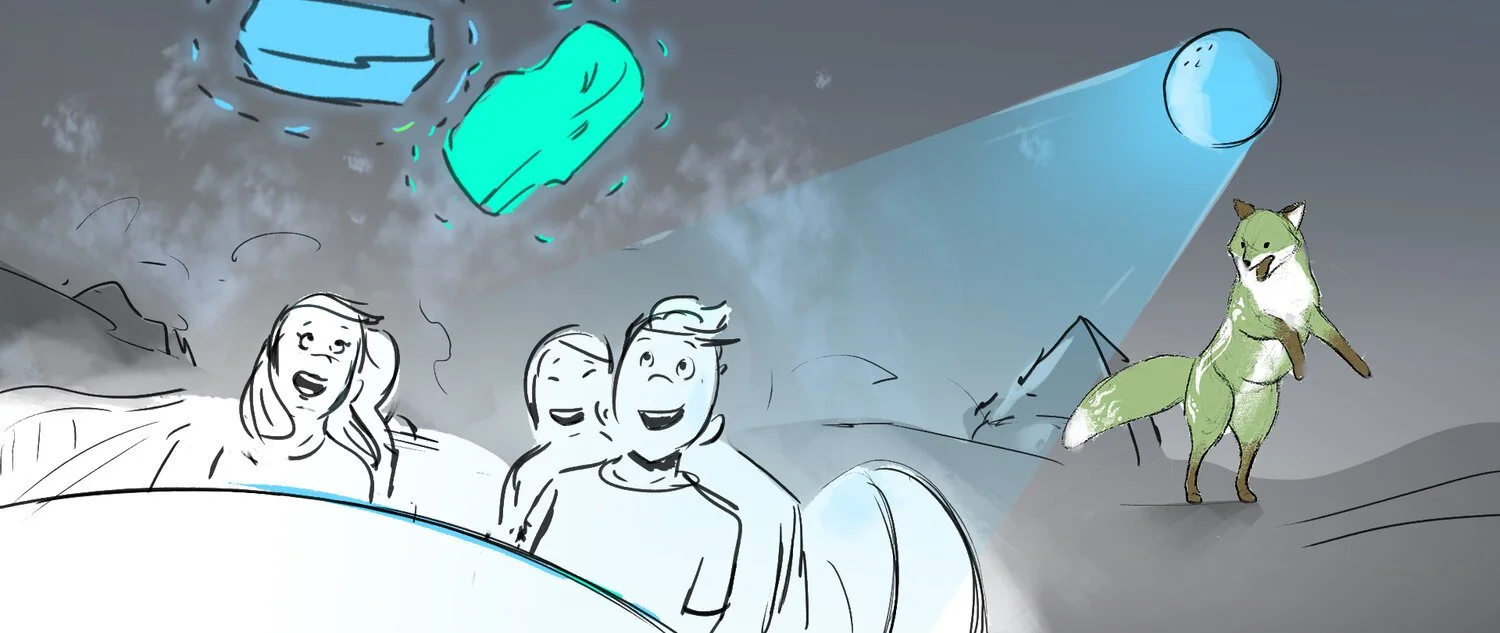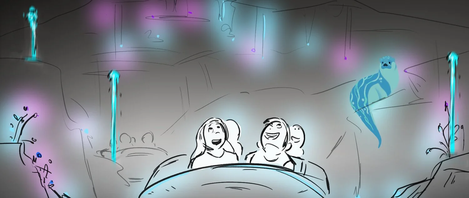 Our epic adventure, like any other theatrical narrative, is written in three acts. The ride experience is unique to each guest, as their specific customized pet is integrated into the environments through projection and holographic technology integrated into the showsets.