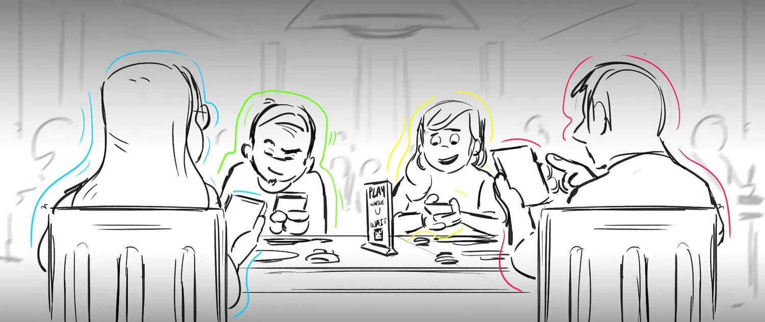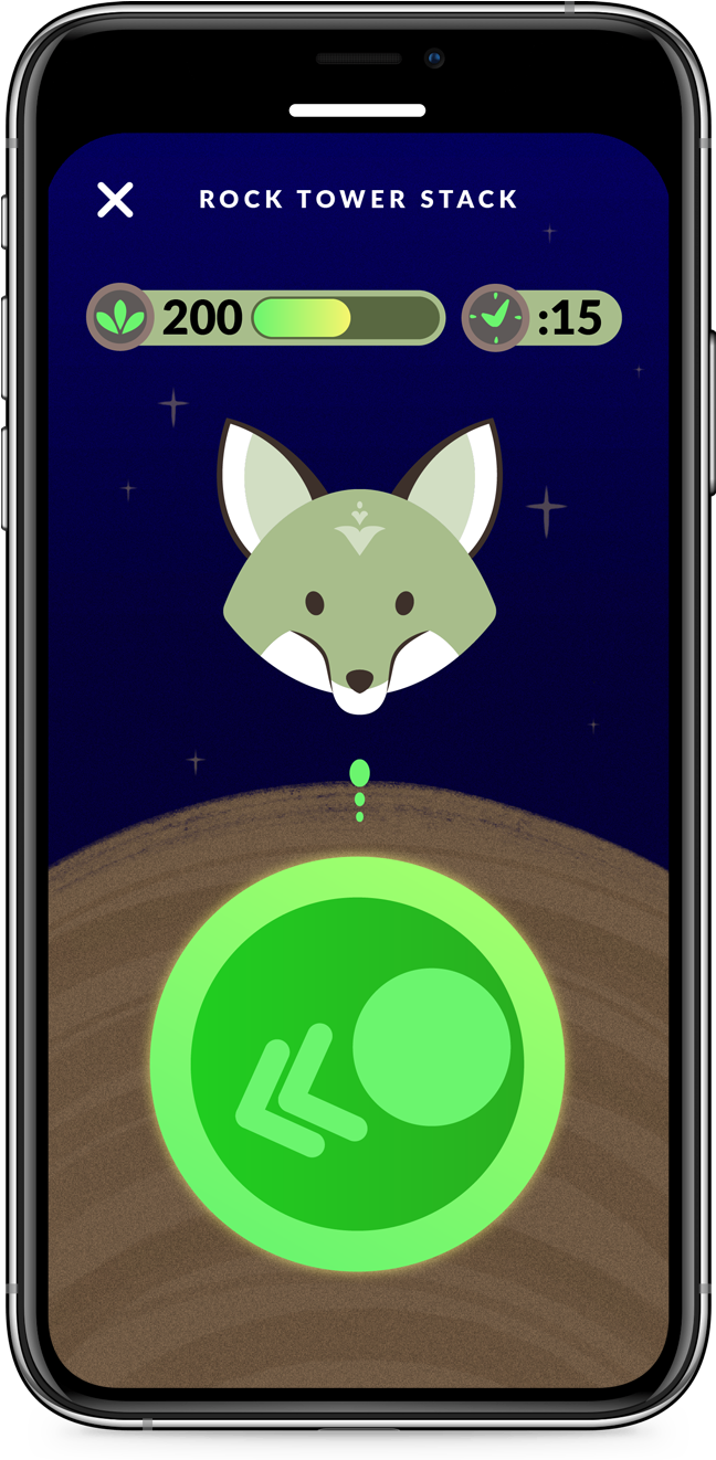 The phone becomes a controller for the user to interact with the games in the space. The UI is designed to be simple and non-distracting so the guests can ‘look up’ at the environment and each other to bond.