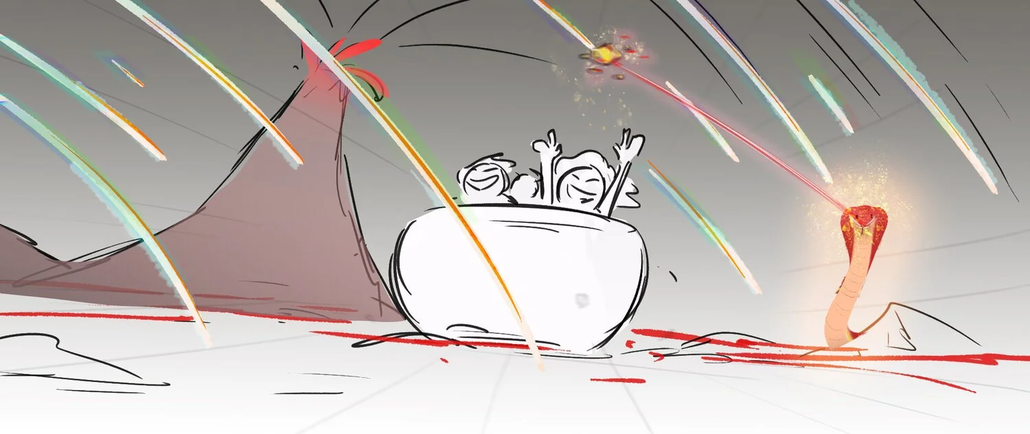ACT 3: Finale. Guests speed out of the cave and discover they’ve been inside the base of an erupting volcano! With the volcanic eruption causing chaos all around them, the spirits use their powers to combat the dangers, shield the guests, and propel the vehicles forward. It’s neck and neck, but ultimately, one vehicle ekes out a victory.